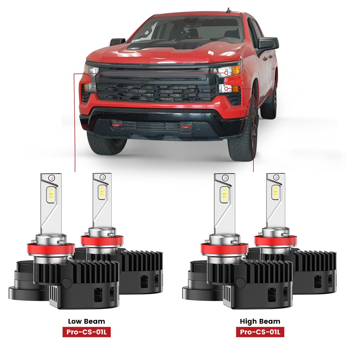 All Pro-DC LED bulbs feature an extended dust cover that fits the original headlight assembly perfectly, increasing the heat dissipation space and enhancing the cooling effect. This ensures the automotive led headlight bulbs maintain high performance even during prolonged use, providing stable and bright illumination for 2019-2026 Chevrolet Silverado 1500 drivers.