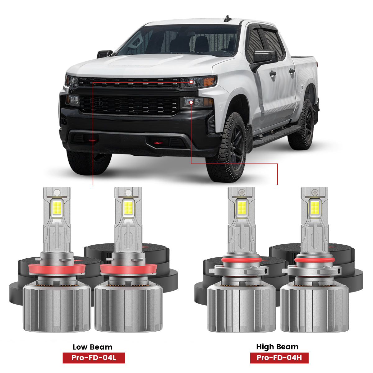Fit for 2019-2026 Chevrolet Silverado 1500 WT/Custom/Custom Trail Boss Custom-Fit H11 9005 LED Bulbs with Dust Cover | Pro-DC Series