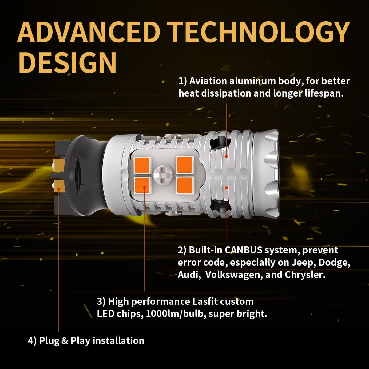 - Front Turn Signal Light for 2016-2018 Passat: PWY24W / PW24W LED Bulbs T3 Series | 3000K amber yellow, 13W, 1000LM per bulb