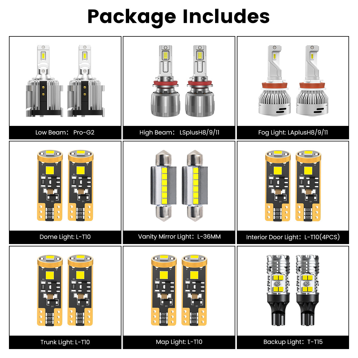 - Fog Light: H11 LED Bulbs LAair Series | 6000K white, 50W, 5000LM per bulb