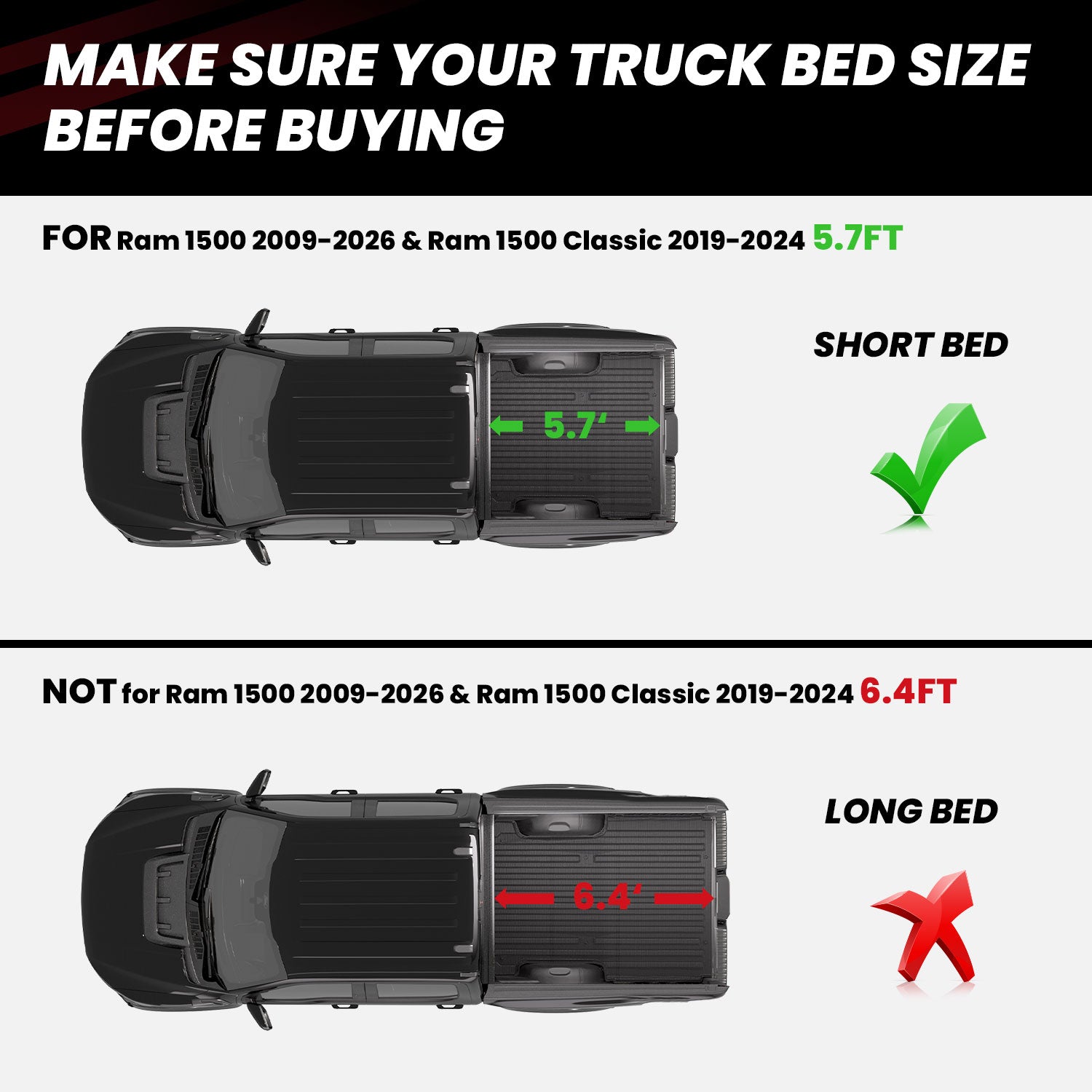 • Fits for Ram 1500 2009-2019, 5' 7" Box