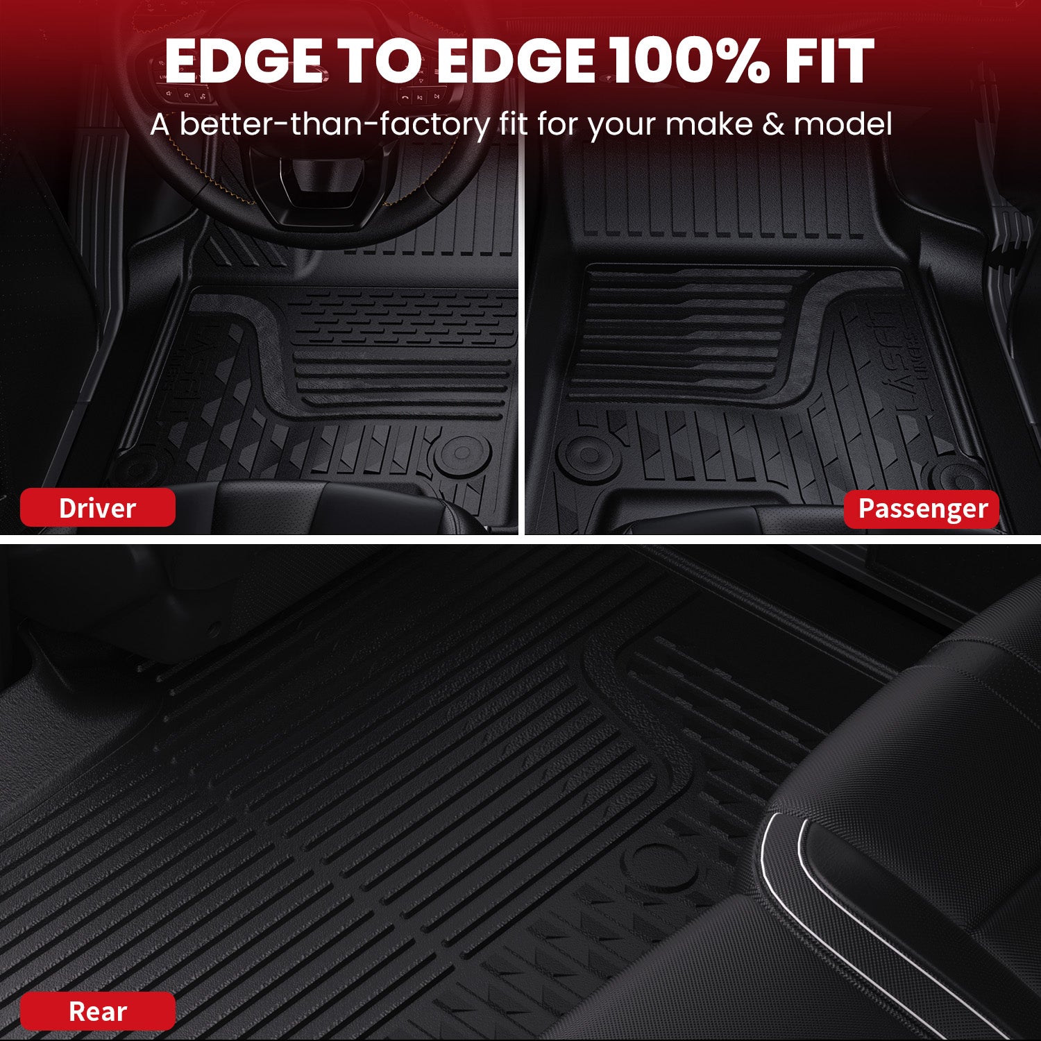 Lasfit's custom-fit floor mats are engineered with advanced 3D scanning technology to perfectly match the contours of your Ram 1500 Classic 2019-2024’s interior, covering every inch of your vehicle's floor. The anti-slip design keeps the mats securely in place for a safer driving experience, while raised edges and innovative channels effectively trap spills, debris, and dirt, making cleanup effortless.