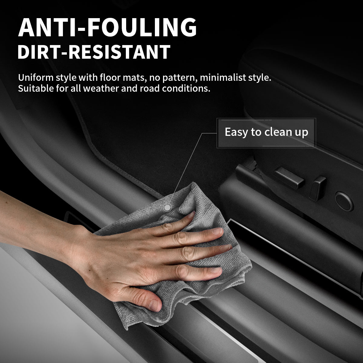 The smooth surface makes it easy to clean by using a damp cloth to wipe off the dirt. Regular cleaning helps maintain and greatly prolong the lifespan of your vehicle’s interior. With them, you won't need to worry about your original door sills getting scuffed and stained.