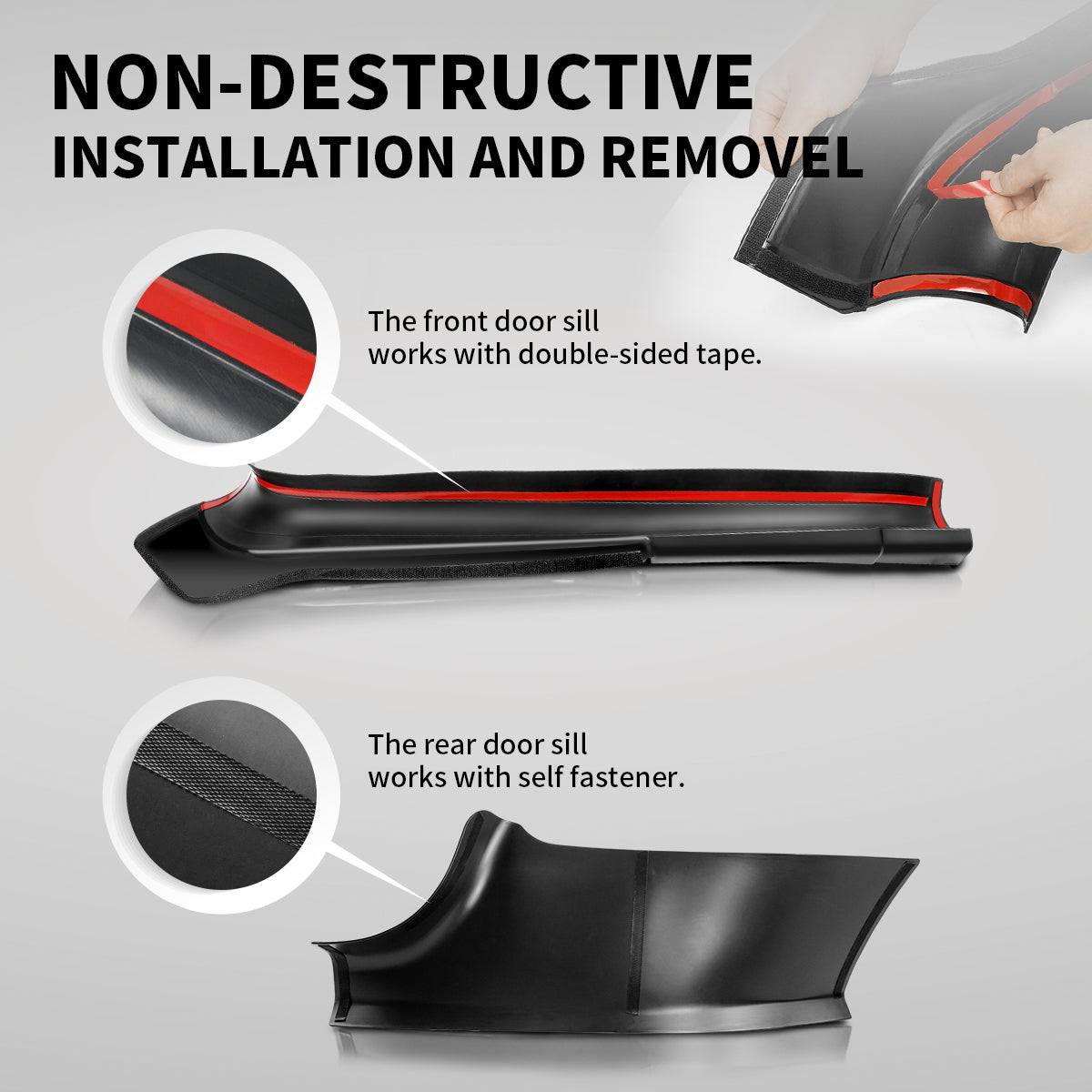 LASFIT door sill protectors are custom-fit for the front & rear doors for your Tesla, ensuring a perfect fit and seamless integration with the overall aesthetic of your Model Y. The thickness less than 2.5mm, does not affect the opening and closing of the doors.