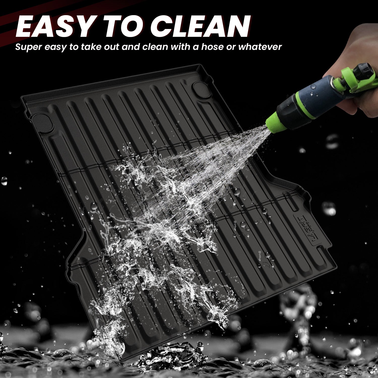 Installing and cleaning them is a breeze. In just a few minutes, you can remove the cargo mat and give it a quick wash with water or a damp towel, whether it's covered in dust, dirt, or sand.