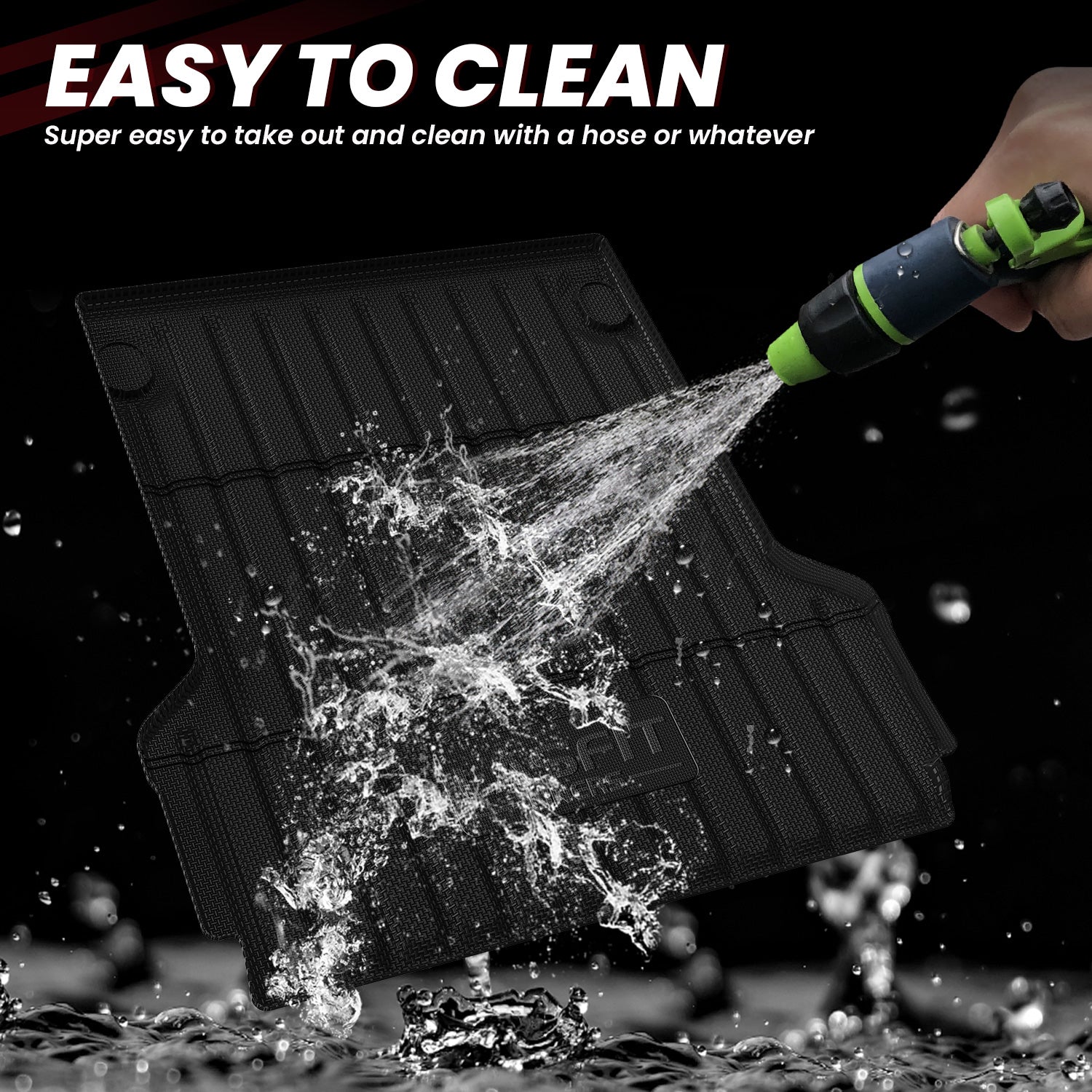 Whether there's dust, dirt, or sand on the mats, just spend a few minutes to remove cargo mat and wash it off with water or a damp towel. Its installation is also effortless and convenient.