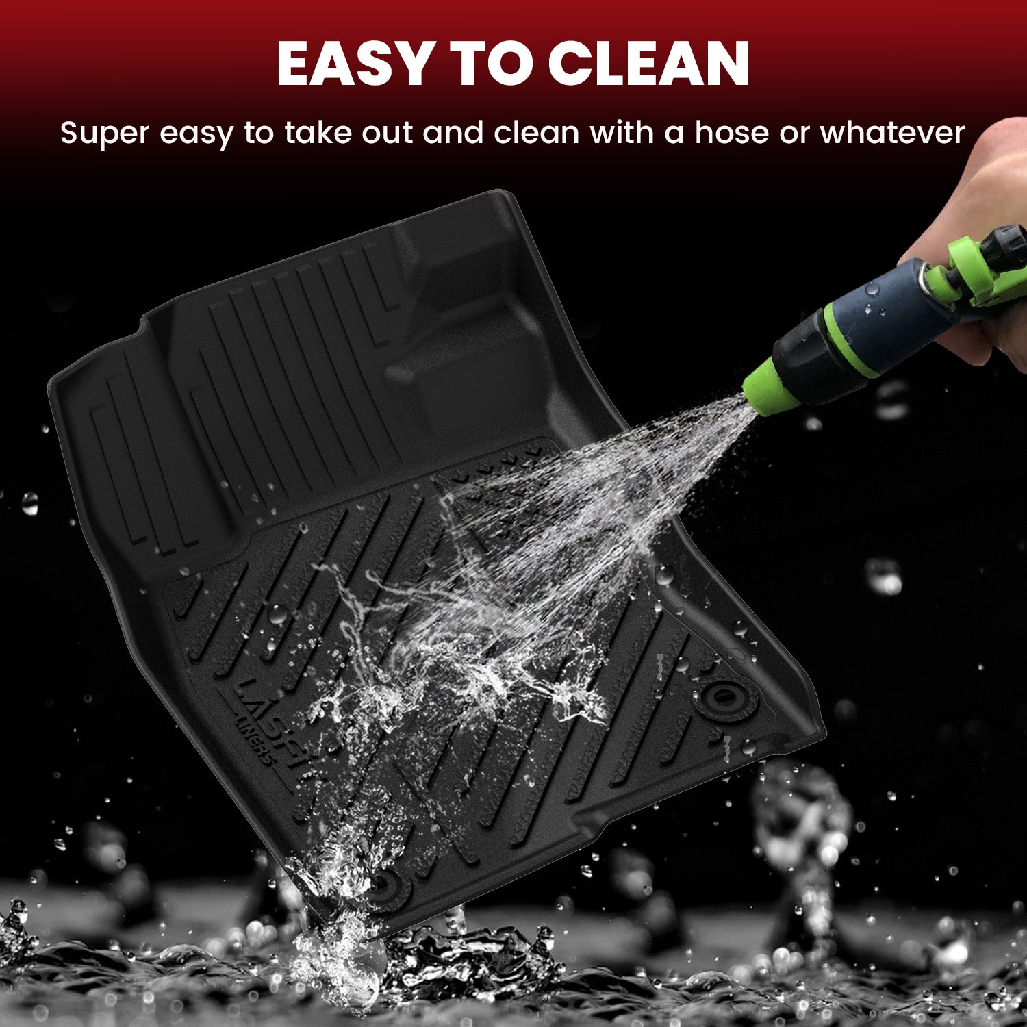 A quick rinse and wipe bring Lasfit floor mats back to like-new condition.