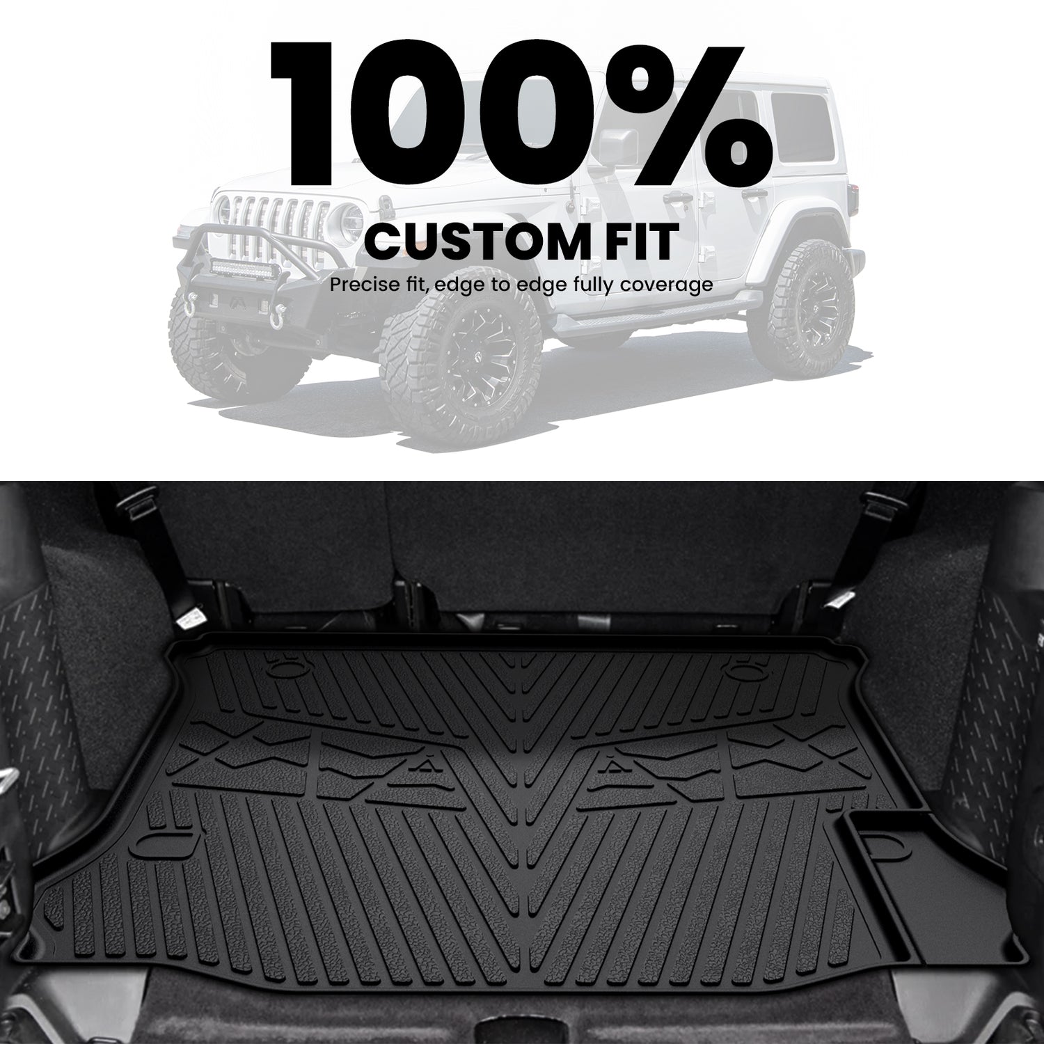 Upgrade your 2014-2018 Jeep Wrangler JK Unlimited with Lasfit’s custom-fit floor mats & cargo mat! Crafted with advanced 3D scanning for a flawless fit, these all-weather mats offer full interior protection, featuring raised edges to trap mud, water, and debris. Heavy-duty, anti-slip, and ruggedly designed—ideal for off-road adventures and maintaining resale value.