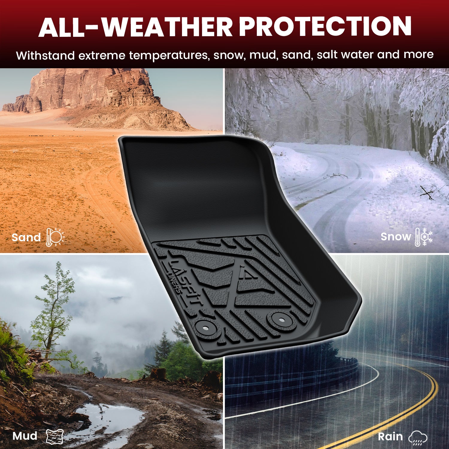 Tackle any terrain with Lasfit’s all-weather floor liners for 2014-2018 Jeep Wrangler JK Unlimited! Made from indestructible, waterproof TPE, these 3D-scanned, custom-fit mats feature raised edges + anti-slip grip to contain mud, snow, and debris from off-road trips. Built to endure extreme temps (-13°F to 167°F) without cracking, they protect your Wrangler’s interior through every adventure. Easy to clean, ruggedly stylish, and designed for life off the beaten path—keep your Jeep pristine and adventure-ready.