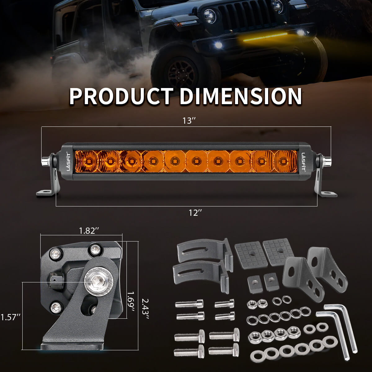 - Featuring a sleek, low profile, slim and single row combo spot flood beam design, the Lasfit LED Amber Light Bars are very helpful in cutting through the fog, smoke, and dust kicked up on a trail ride without reflecting glare back in your eyes. Ambers are also easier for the eyes to focus on so can help let others see you in bad weather conditions.