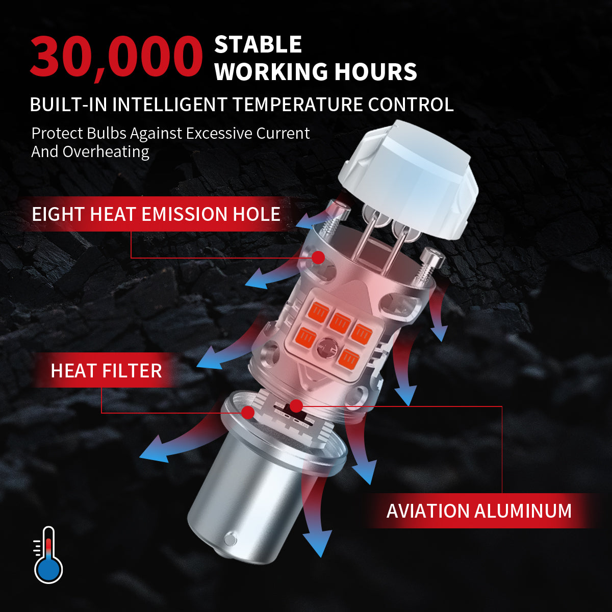 Tired of hyper flash and dashboard warning lights after installing LED bulbs? The T3 series solves this problem with a ceramic resistor built directly into the bulb, eliminating the need for external resistors. That means easier installation, lower costs, and a cleaner setup—just plug and play. -
