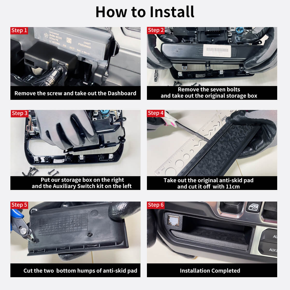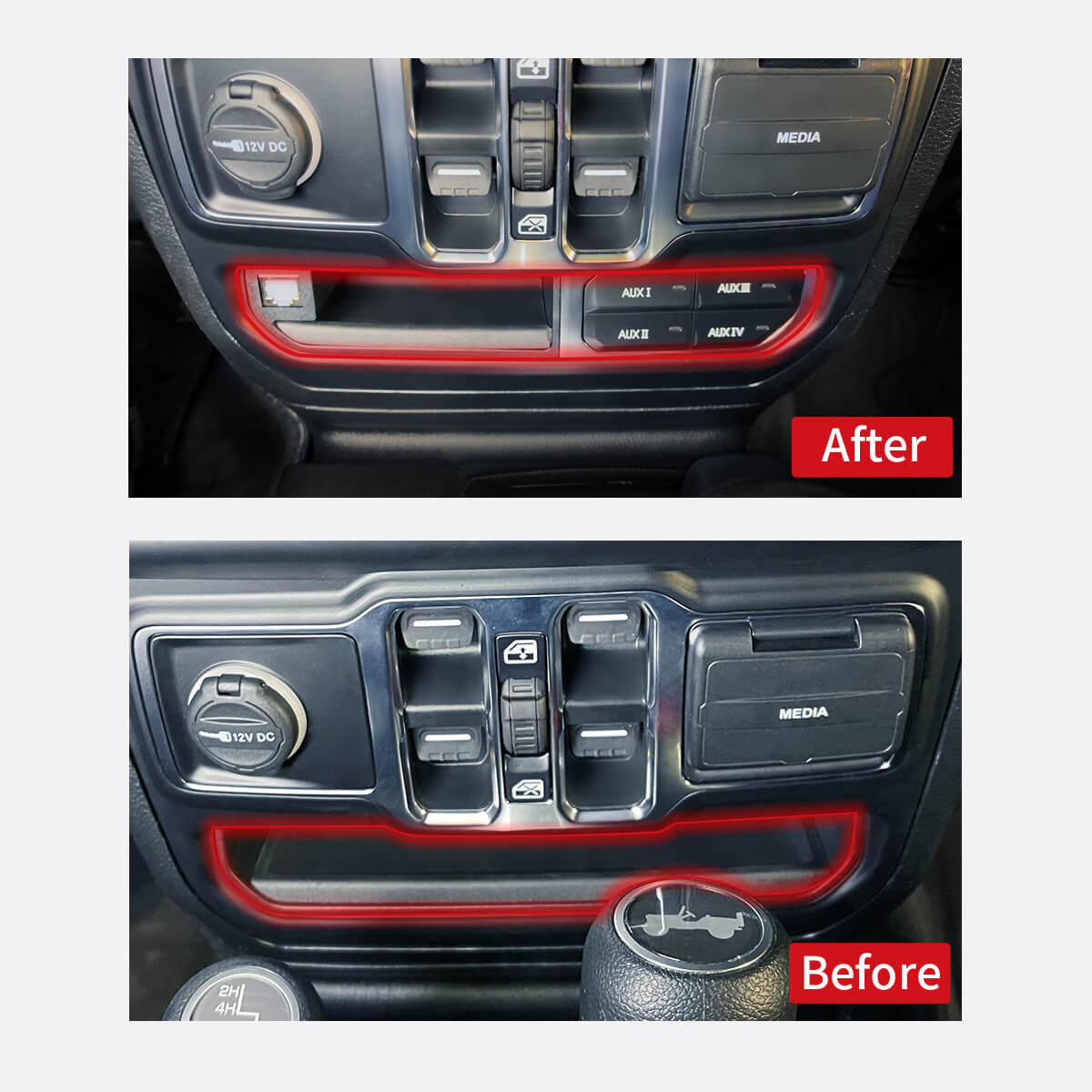 With Lasfit storage bin, Jeep Wrangler JL and Gladiator JT owners can utilize half of the in-dash cubby as a storage bin when installing a switch system in the other half.