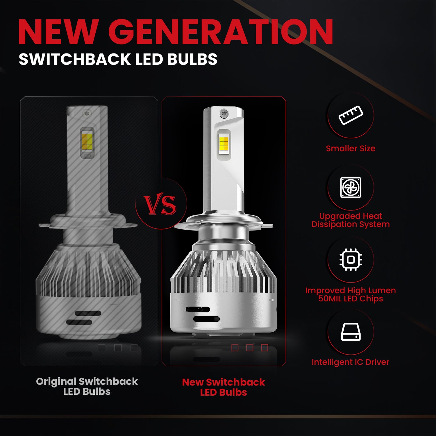 Lasfit LDplus series led H7 switchback bulb with a brand new appearance provides a unique way to upgrade your vehicle's lighting. 2 Modes Switchback-3000K yellow/6000K white light increasing overall visibility and road illumination in rainy, snowy, harsh weather.