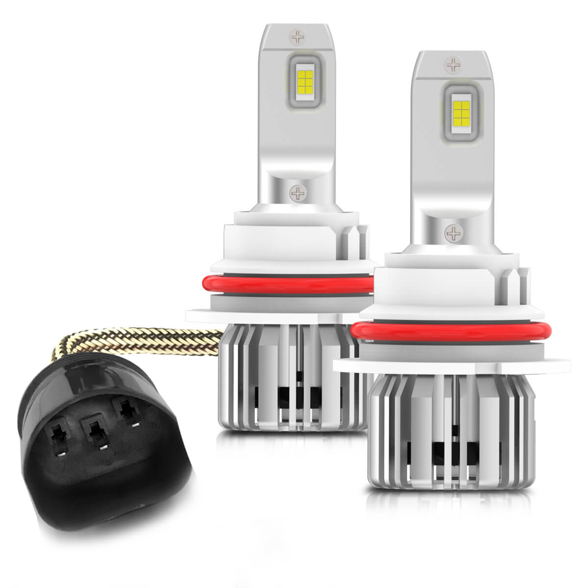 50W/set, 5000LM/set. The LC plus series was upgraded from COB chip to 6pcs 55mil Flip chips on each side to provide more lighting effects in lower power consumption. It can be 300% brighter than your factory halogen bulb and more lighting effect in 50 wattages (per set).