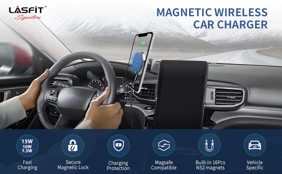 Magnetic Wireless Car Charger, Specific Phone Mount for Ford Explorer 2020-2022, 15W max Fast Charging for iPhone 14 13 12 Series Compatible with MagSafe Case