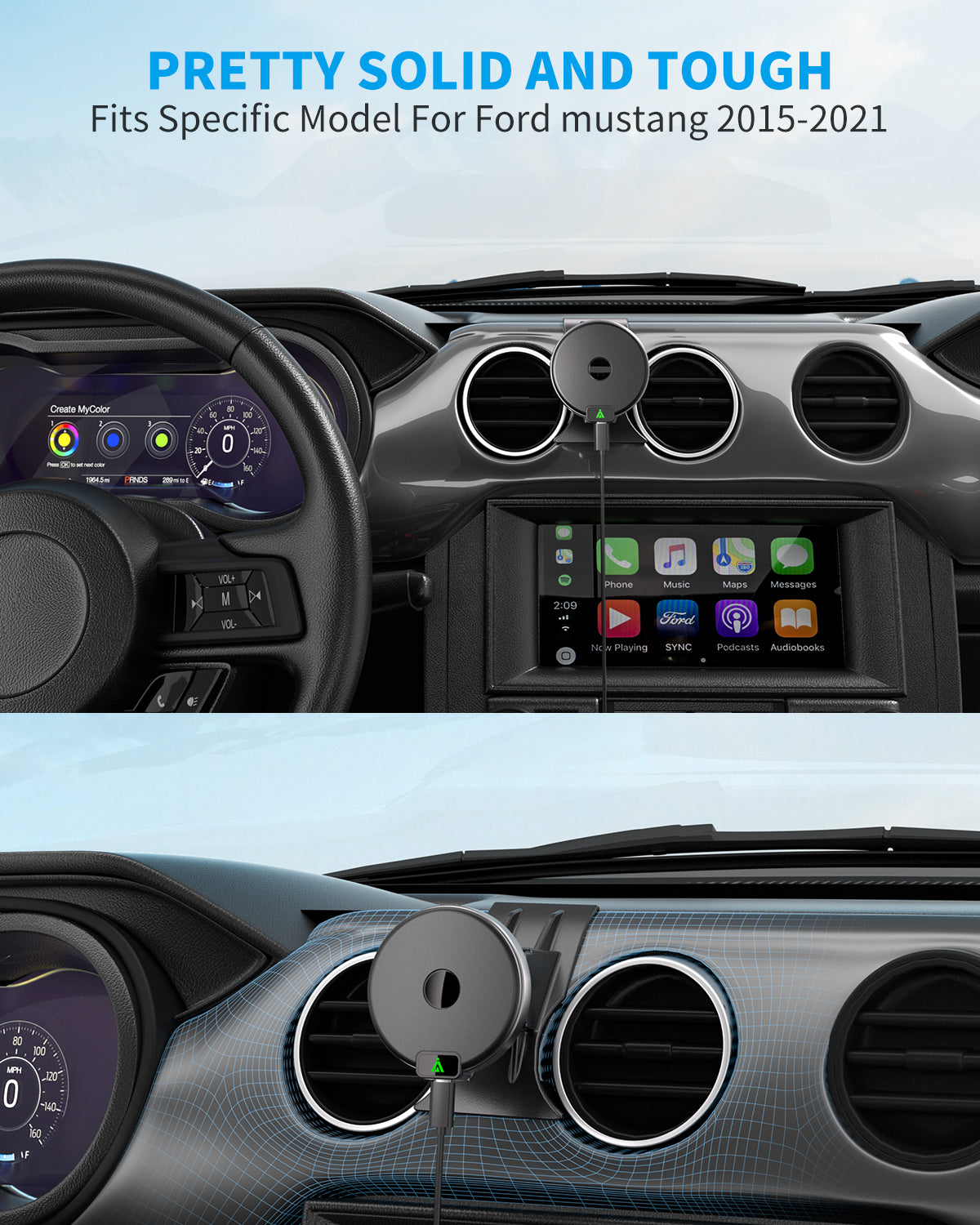 Magnetic Wireless Car Charger, Specific Phone Mount for Ford Mustang 2015-2021, 15W Max Fast Charging for iPhone 14 13 12 Series Compatible with MagSafe Case