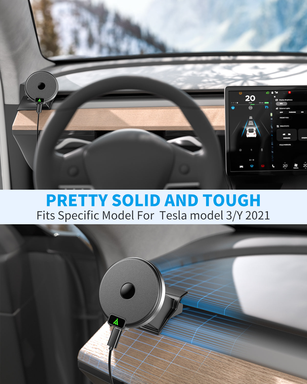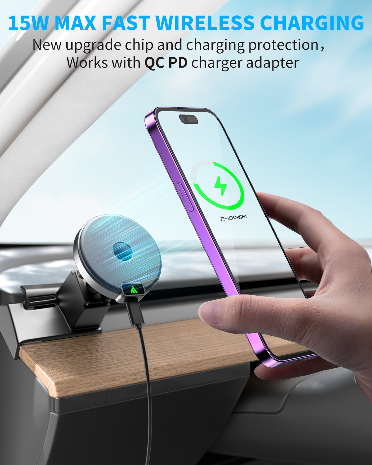 Magnetic Wireless Car Charger, Specific Phone Mount for 2021 Tesla Model 3 Model Y, 15W Max Fast Charging for iPhone 14 13 12 Series Compatible with MagSafe Case
