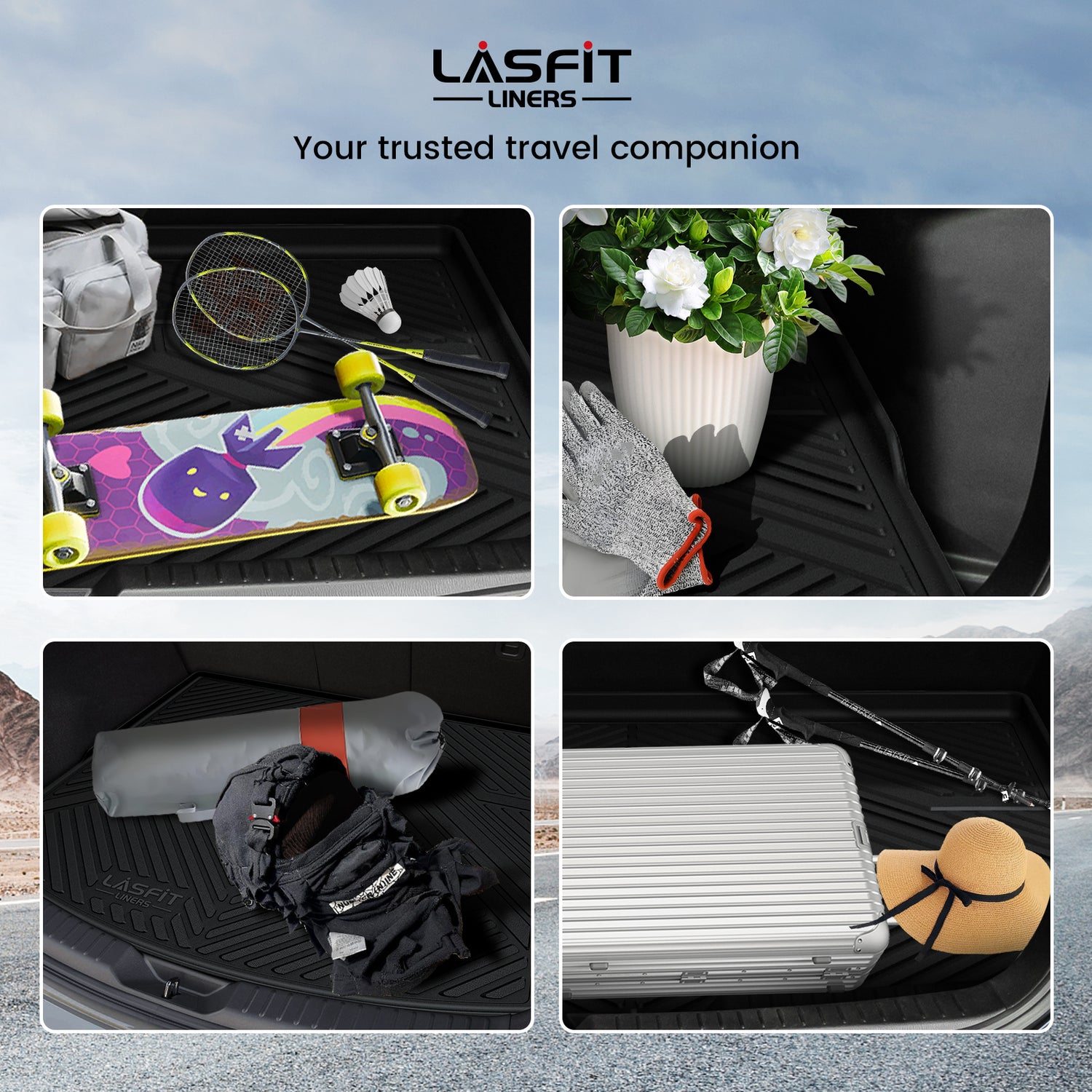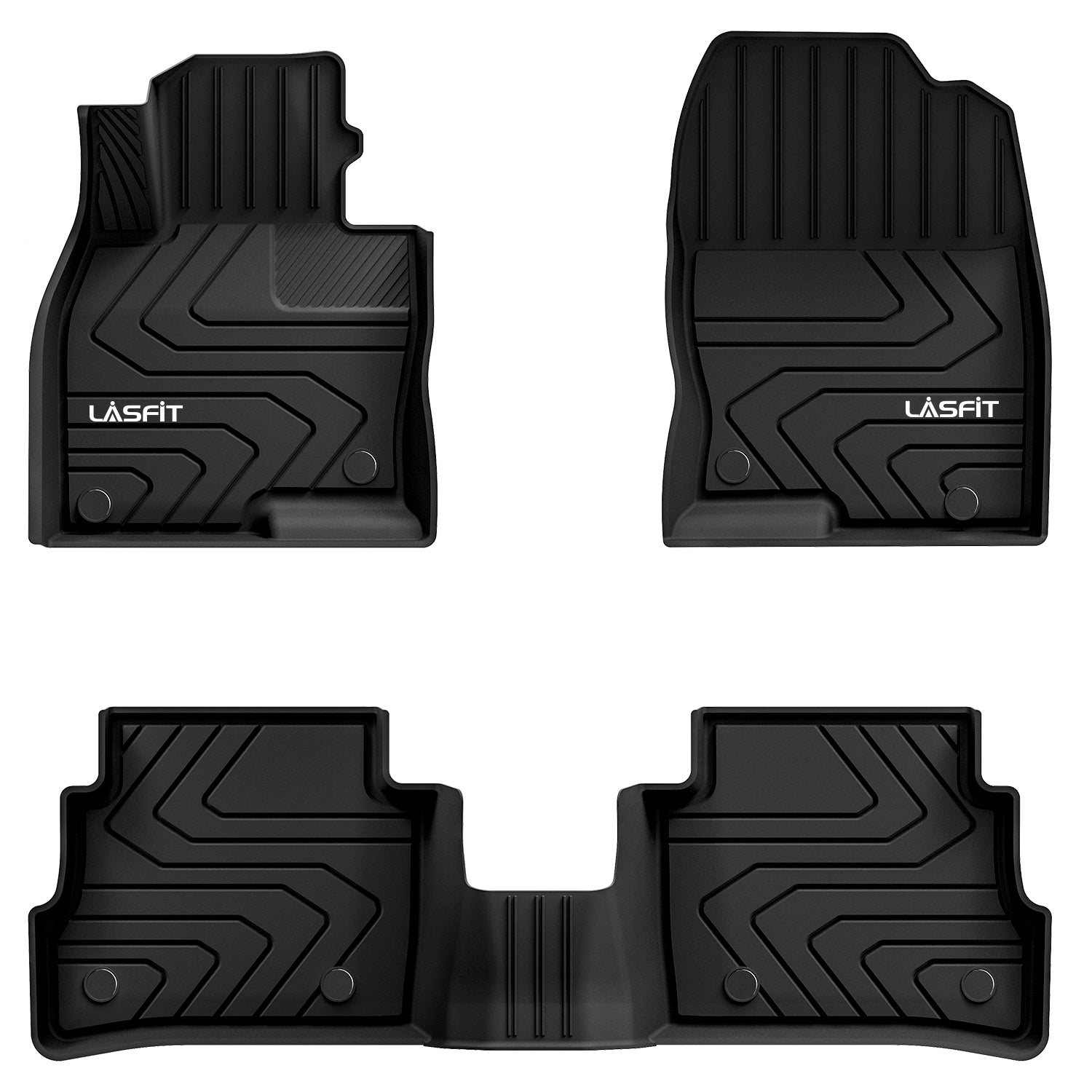 Lasfit's all-weather floor mats are customize for the Mazda CX-5 2017-2025. They are designed to protect your vehicle's resale value with a precise 3D laser-scanned fit. These mats feature non-slip material and secure retention systems to prevent sliding. The textured surface effectively traps debris and liquids, ensuring clean carpets and safe driving with stable throttle and brake control.