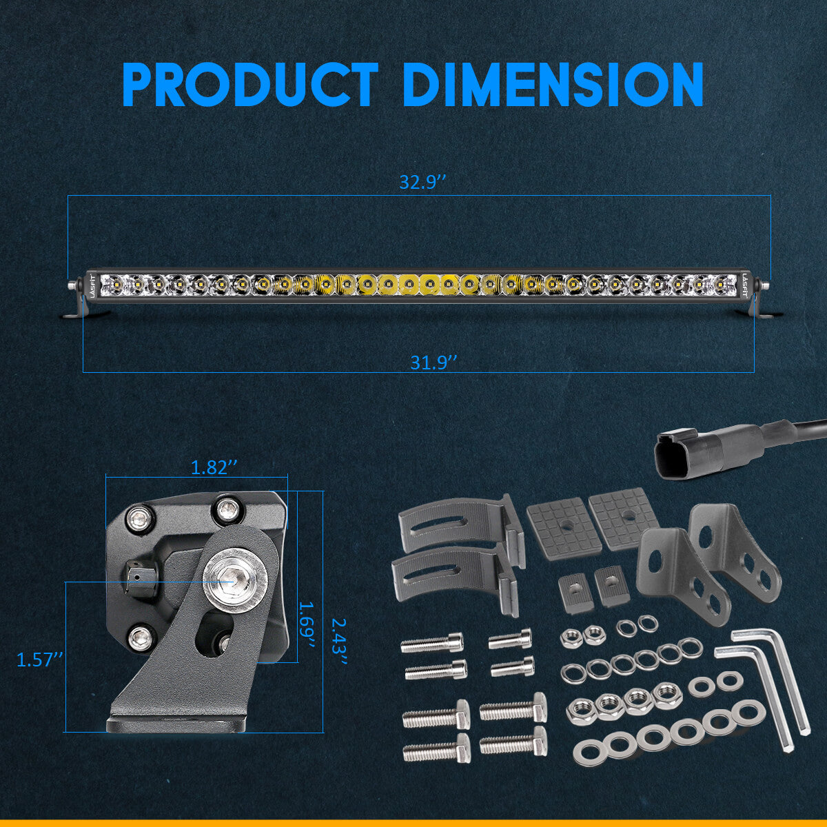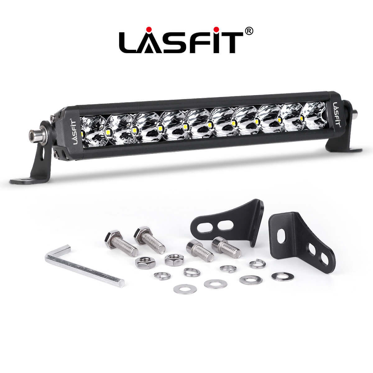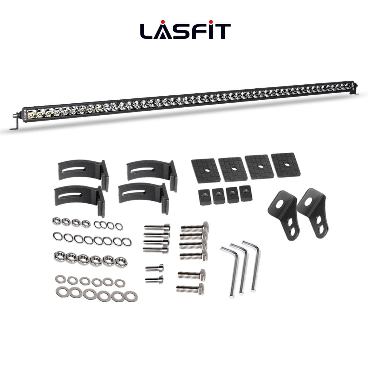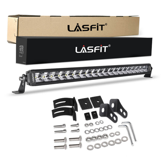 The Lasfit 12-52" LED light bar can be adjusted up and down to 360 degrees, offering convenience for adjusting the position flexibly when needed. The adjustable mounting bracket makes changing the direction of the light beam easier.