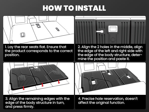 1.Lay the rear seats flat, and ensure the product corresponds to the correct position.