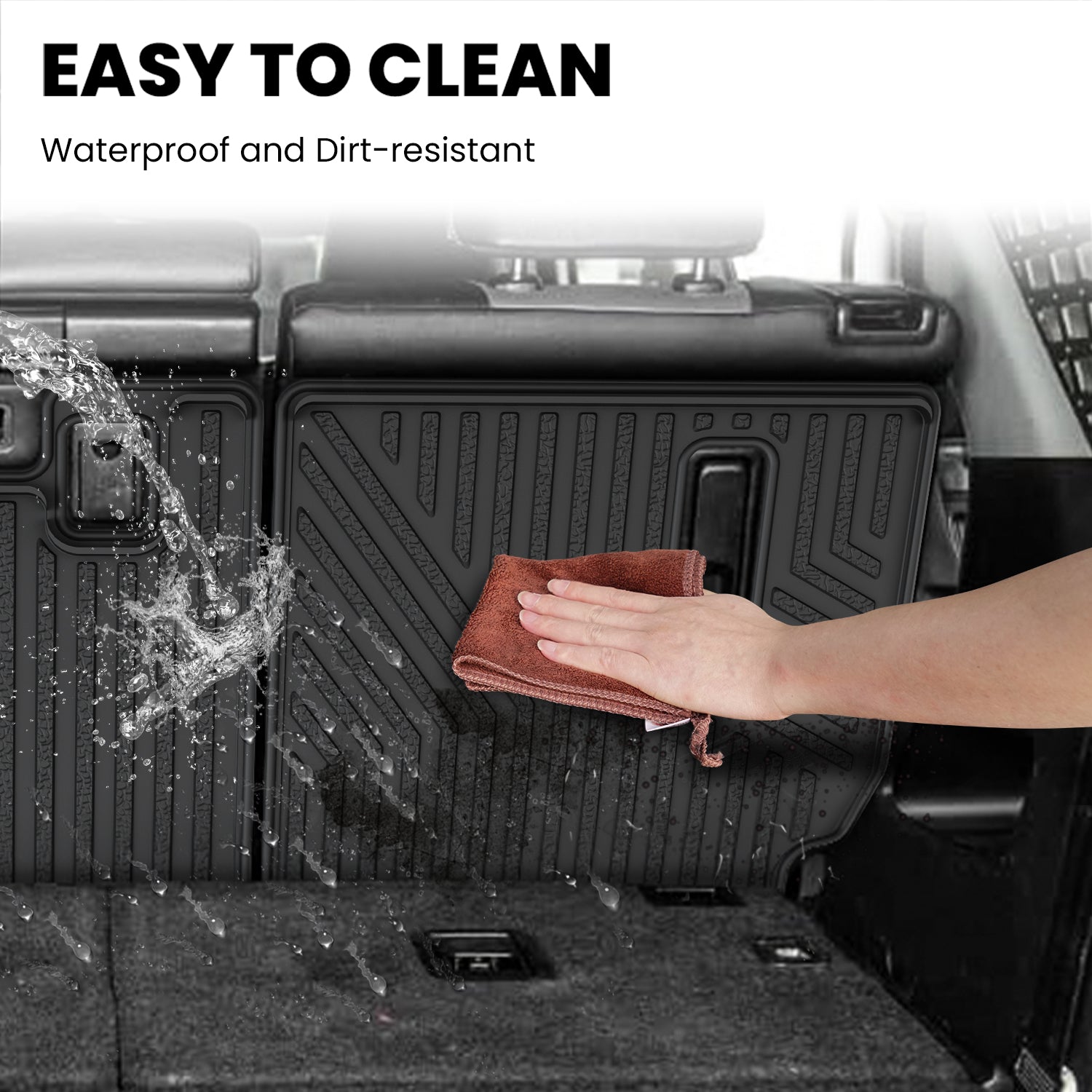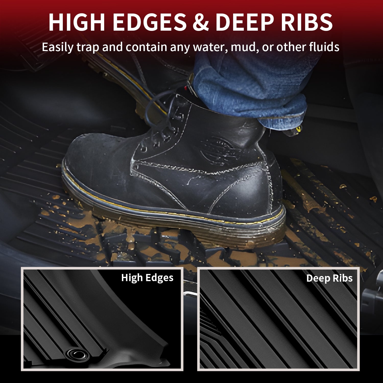 Our all-weather floor mats are designed to withstand any weather condition. They are stain-resistant, waterproof, and anti-slip, making them easy to clean and maintain. Built from high-quality materials, these liners won't break down under extreme weather or daily wear like rain, slush, snow, or mud. The durable edges resist slouching and won't deform in winter. After cleaning, the mats will look brand new, maintaining their effectiveness and appearance.