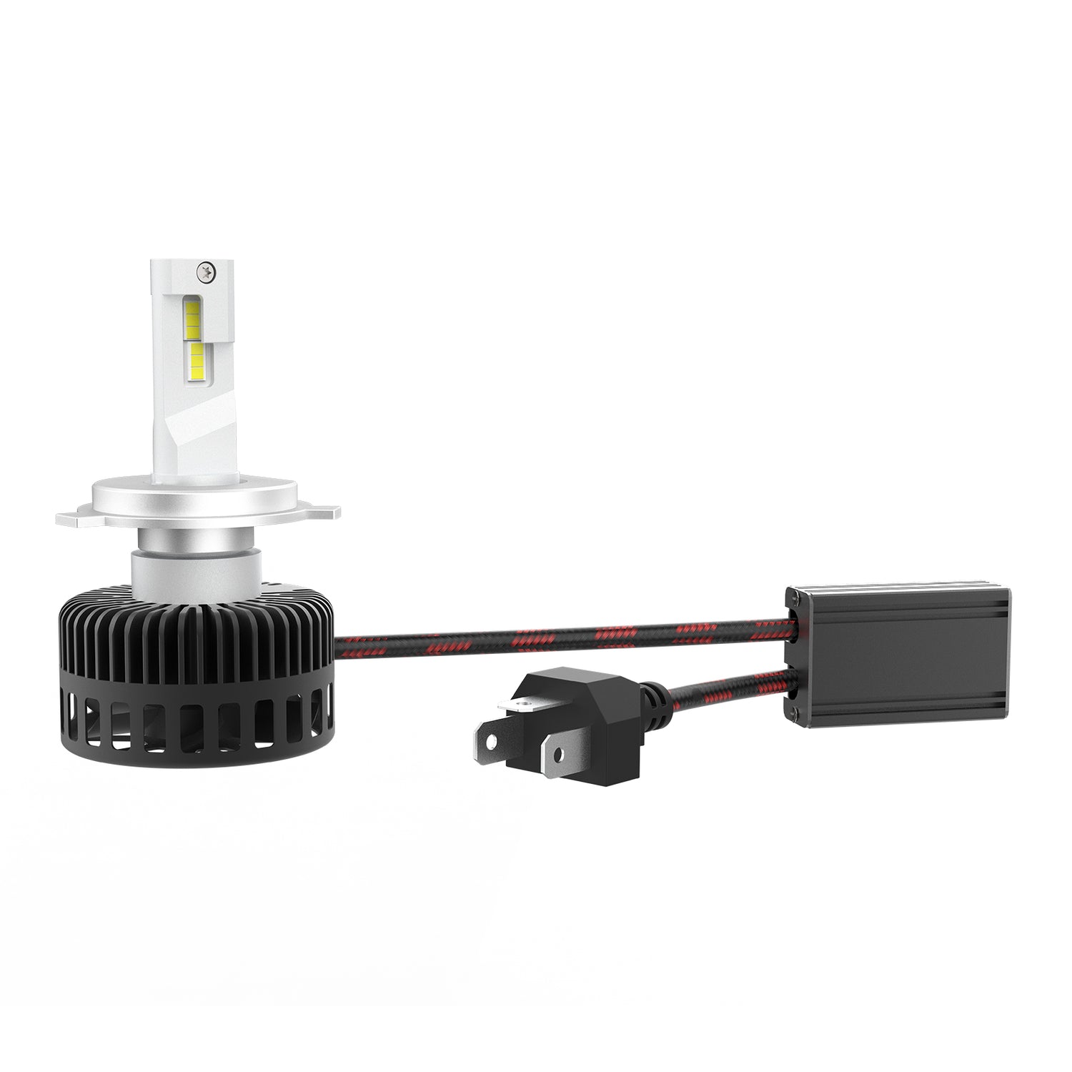 These H4 LED bulbs provide 600% more brightness than traditional halogen bulbs, offering 50W of power and 5000 lumens per bulb for exceptional visibility. Equipped with high-performance 80*80MIL automotive-grade LED chips, they emit a sharp 6000K daylight white light, enhancing safety even on the darkest roads. The precisely engineered mounting socket ensures an optimized beam pattern with a clear cut-off, reducing glare while maximizing brightness.